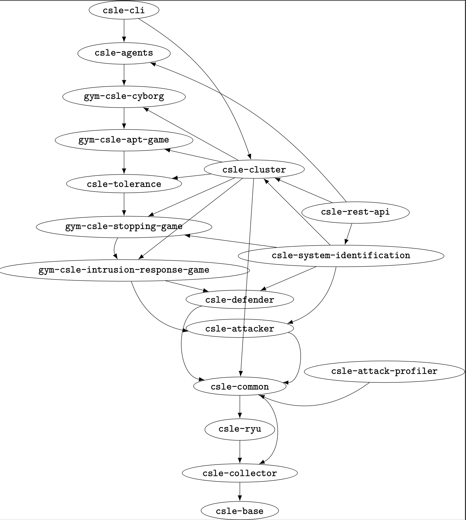 These files need to be updated whenever a Python dependency is added or removed. The dependency structure among the CSLE Python libraries is shown in Fig. 31.
