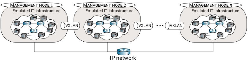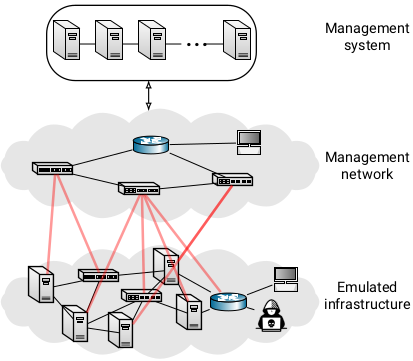 Emulation with 64 components, 6 flags, password RCE vulnerabilities, IDS, SDN. |