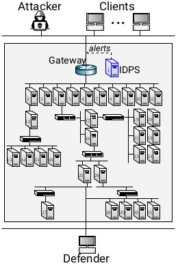 Emulation with 13 components, 6 flags, password vulnerabilities, IDS. |