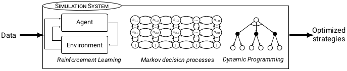 Figure 16: Overview of the simulation system; it uses data collected from emulated IT infrastructures to instantiate simulations of Markov decision processes (MDPs) and to optimize defender strategies through reinforcement learning and other optimization methods.